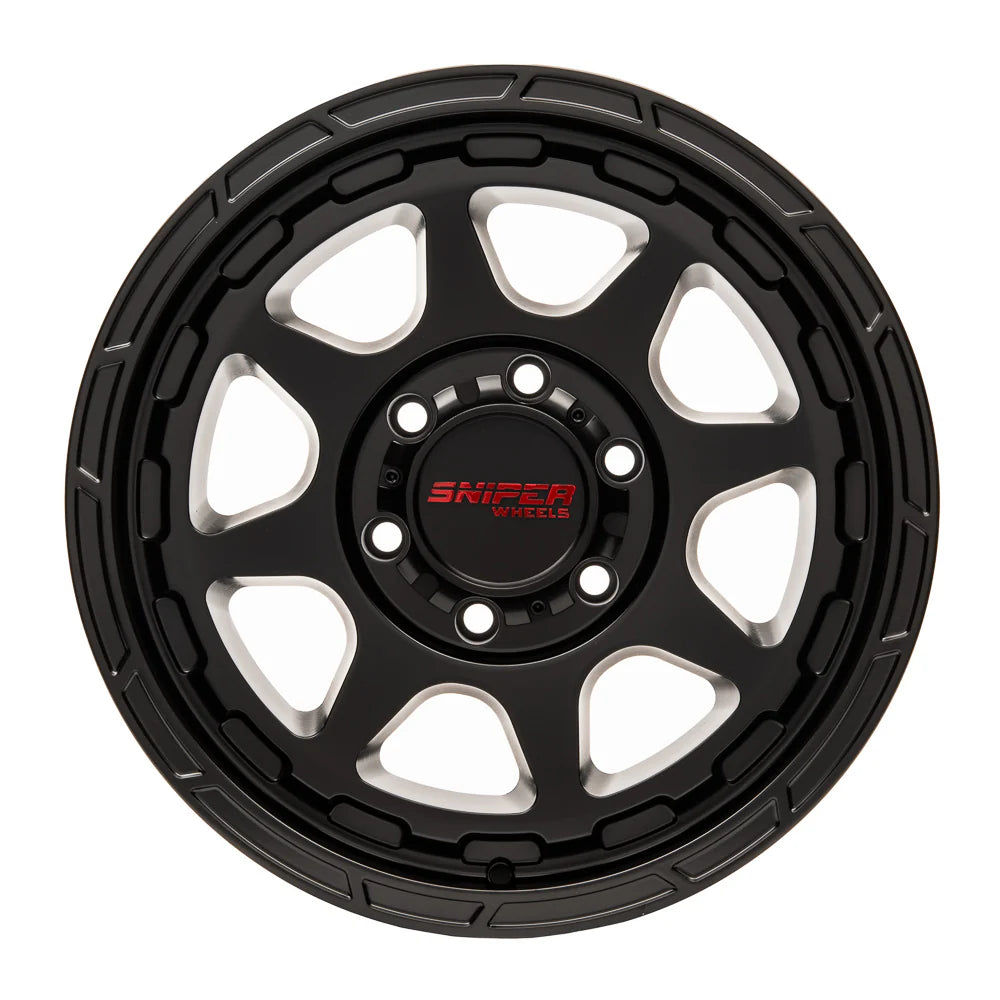Sniper Tracer is our latest model with cutting edge CNC detail, thick 8 spoke design built tough for all your adventures. Tracer is available in several PCD, colors and offset. This model wheel is load rated to 1600kg per wheel and meets and exceeds JWL-T / VIA. All wheels come with centre caps. Designed and concepted right here in Perth Western Australia.